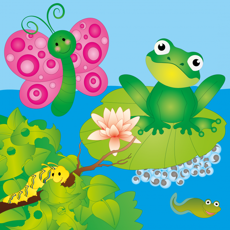 Les enfants découvrent les étapes de la métamorphose à travers les papillons et les grenouilles, en observant et en explorant leurs transformations.